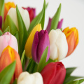 Оранжевые кустовые и красные одноголовые розы в корзине