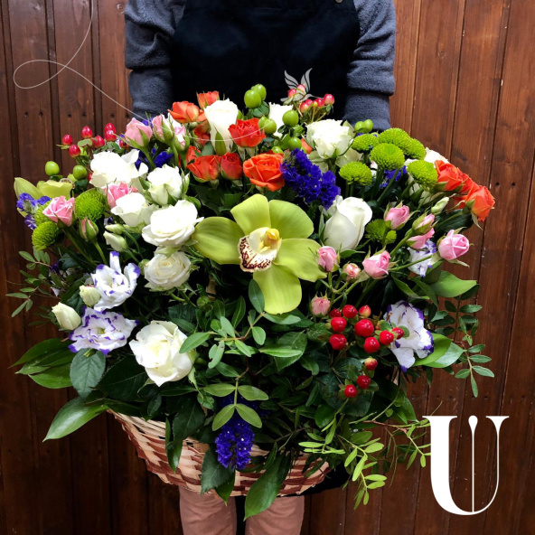 - Корзина круглая (выс. 15 см, выс. с ручкой 50 см, шир. 30 см) - 1 шт