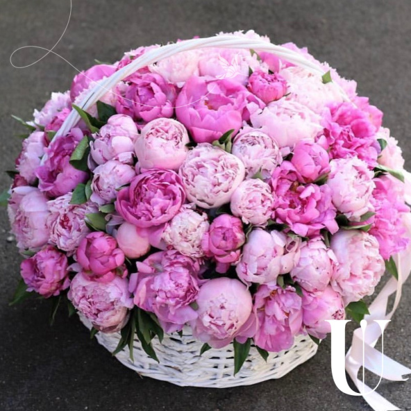 Корзина цветов "Козина с пионами"