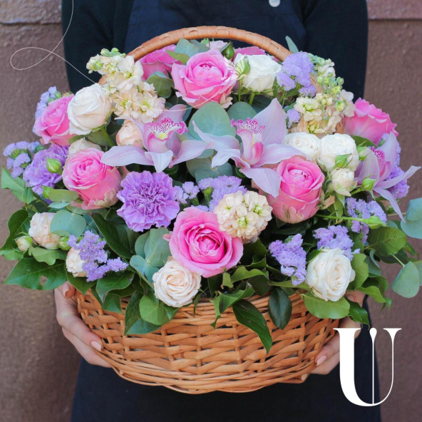 - Корзина круглая (выс. 13 см, выс. с ручкой 43 см, шир. 25 см) - 1 шт