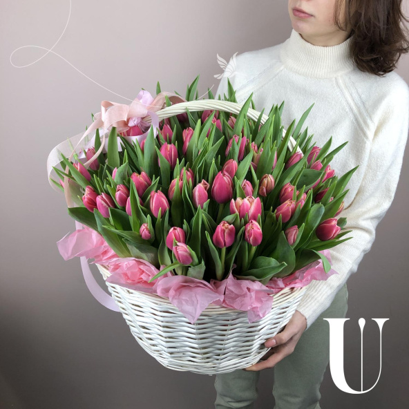 Огромная композиция из 151 розы сорта Мисс Пигги в корзине