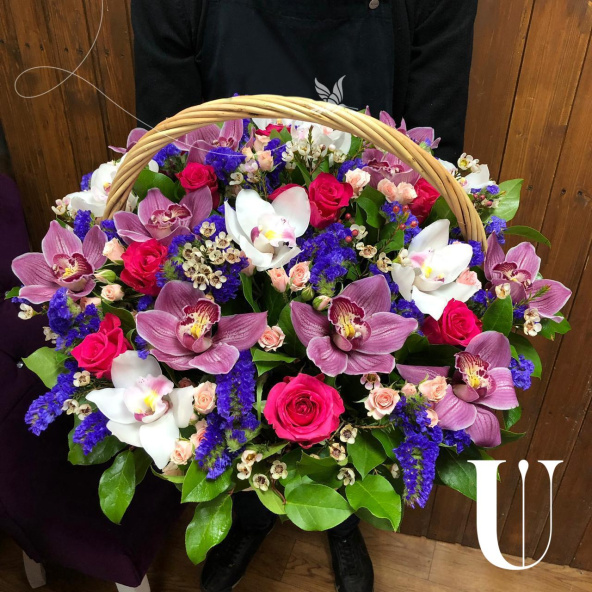 - Корзина круглая (выс. 15 см, выс. с ручкой 50 см, шир. 30 см) - 1 шт