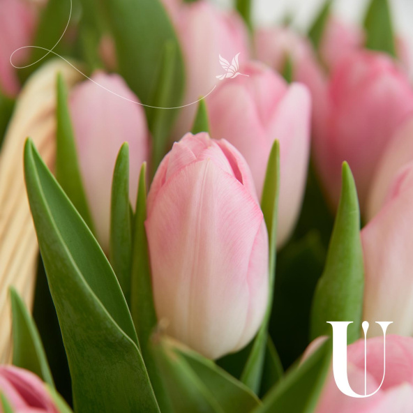 Композиция из 15 роз сорта Пинк Мондиаль в корзине