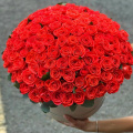 Кустовые пионовидные розы Мисти Бабблз в шляпной коробке