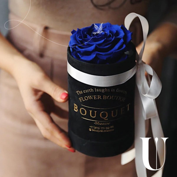 Стабилизированная роза ( живет 5 лет ), не осыпается и не увядает - 1 шт., бархатная коробка - 1 шт.
