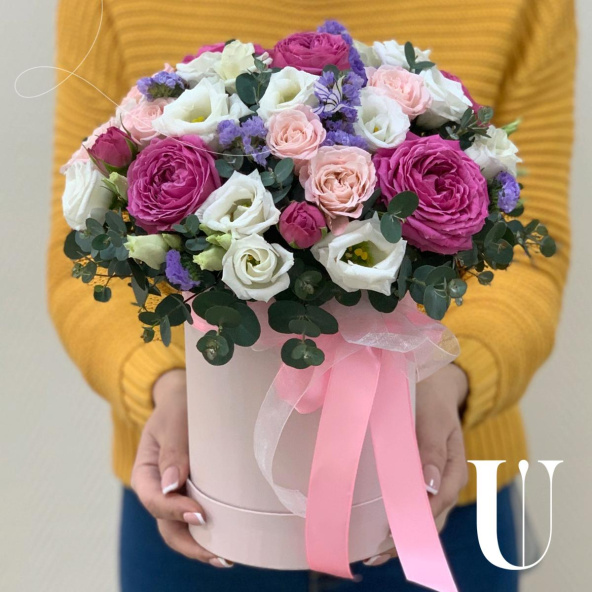- Шляпная коробка, нежно-розовая (выс. 17 см, диам. 14 см) - 1 шт