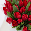 Композиция в белой гамме из роз, эустом и маттиол в розовой шляпной коробке