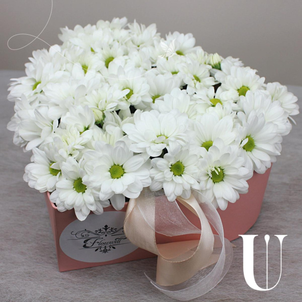 Белые орхидеи и розовые кустовые розы в шляпной коробке