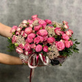 Нежная композиция в стиле французского прованса из роз, маттиол, альстромерий и зелени