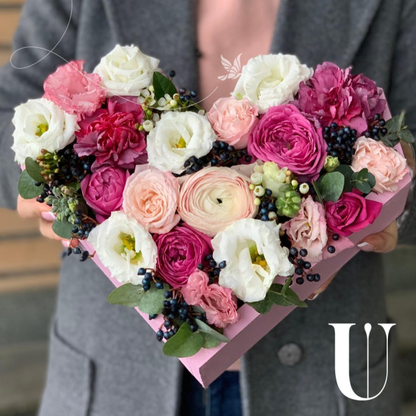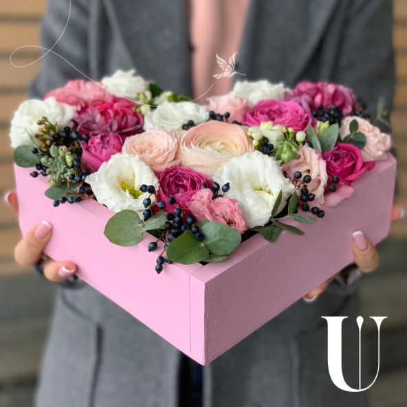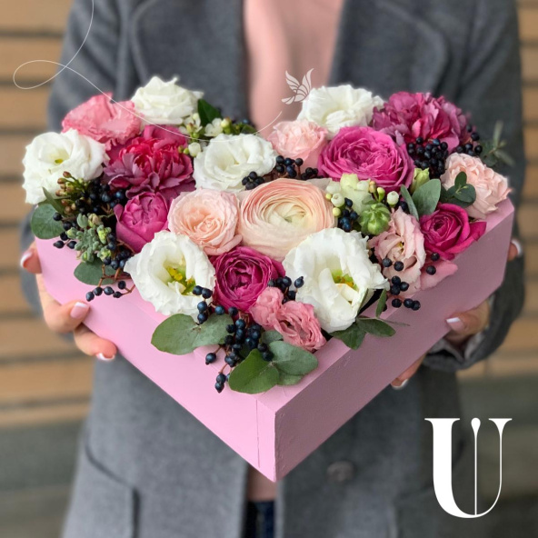 - Ящик Сердце, деревянный, нежно-розовый (выс. 7 см, выс.с ручкой 7 см, дл. 26 см, шир. 30 см) - 1 шт