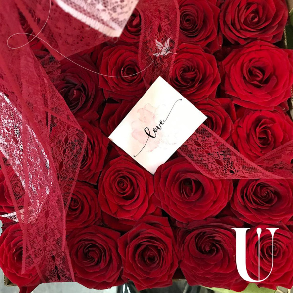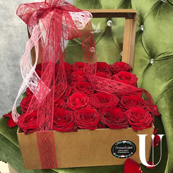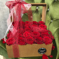 Розы Ред Наоми, шоколад и мишка мини в коробке формы сердца
