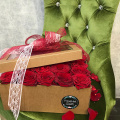 Композиция из гвоздик, роз и других цветов в белой коробке