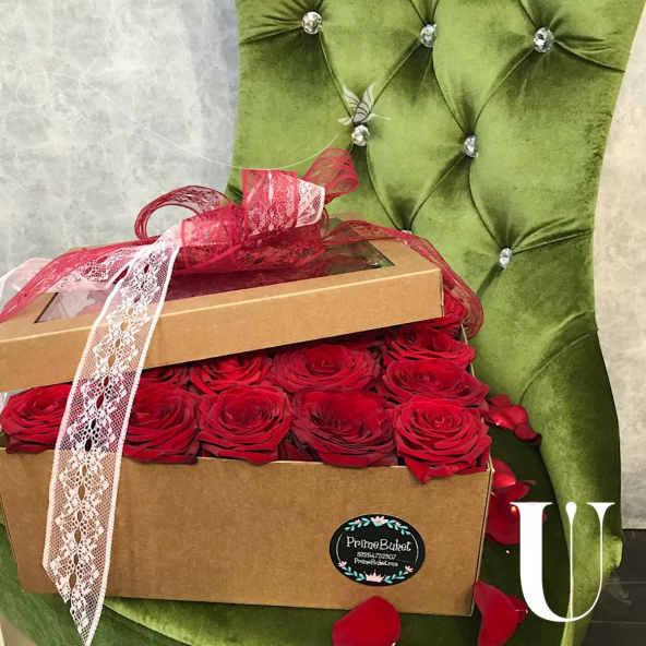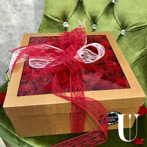 Лизиантус, кустовая роза и альстромерия в подарочной коробке