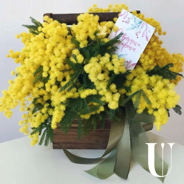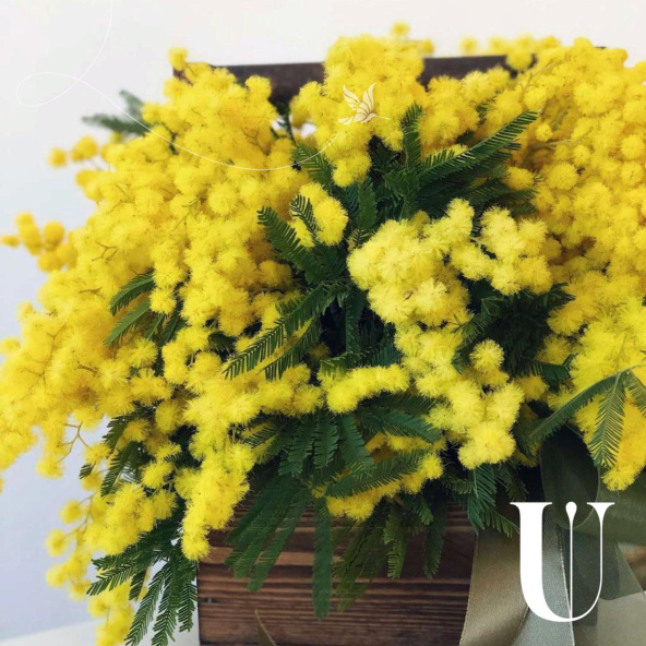 Цветы в коробке "Мимоза в ящике"