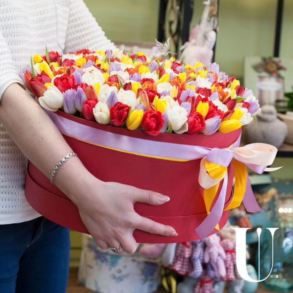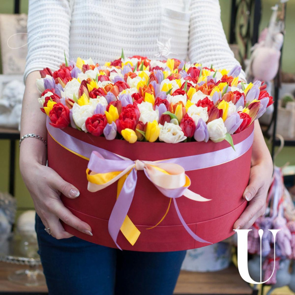 - Шляпная коробка бархатная, красная (выс. 23 см, диам. 20 см) - 1 шт