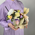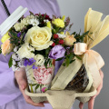 Напишите в комментарии к заказу пожелания по цвету композиции - мы соберём на любом вкус!