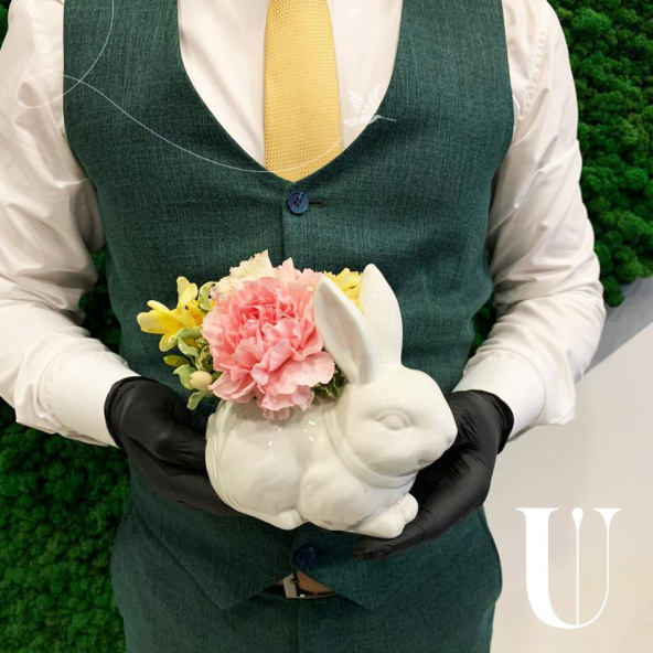 Цветы в коробке "Пасхальный зайка"