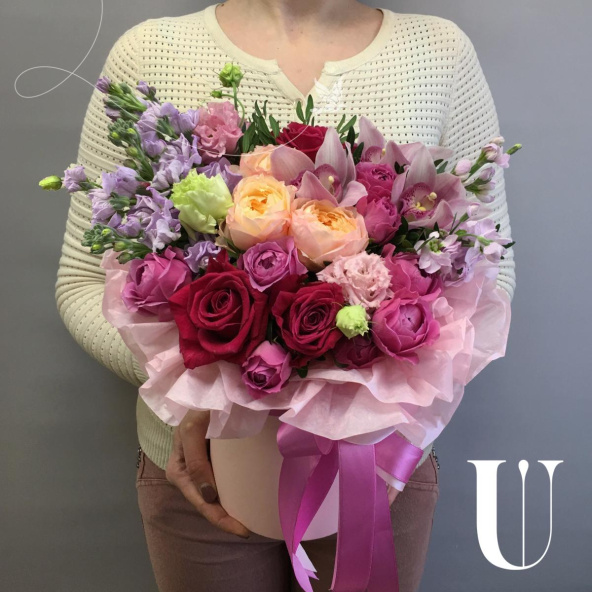 - Шляпная коробка маджестик, розовая (выс. 25 см, диам. 20 см) - 1 шт
