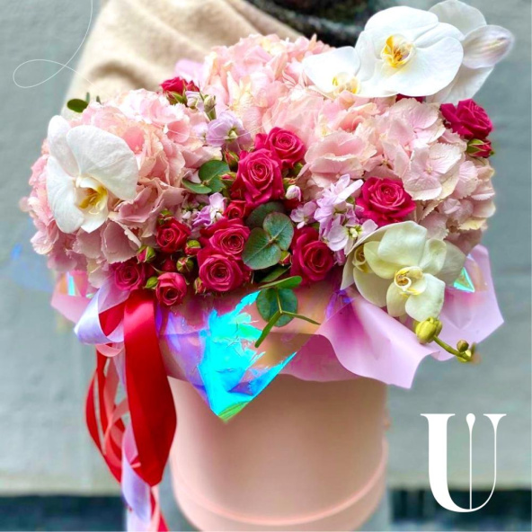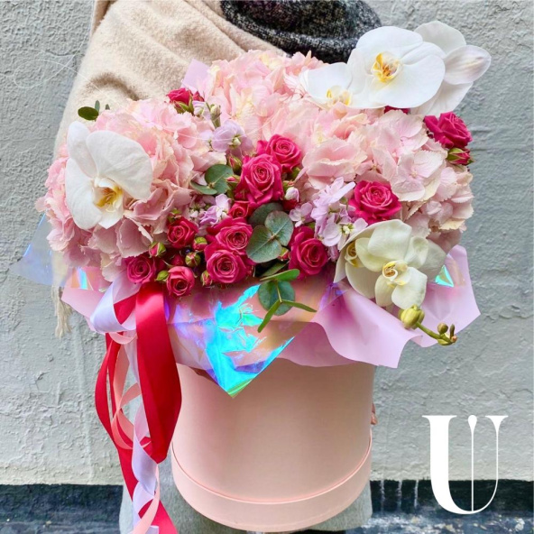 - Шляпная коробка бурано, розовая (выс. 20 см, диам. 25 см) - 1 шт