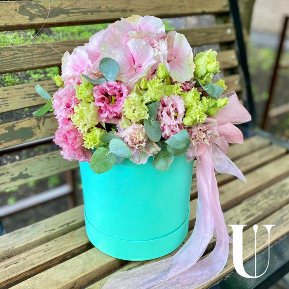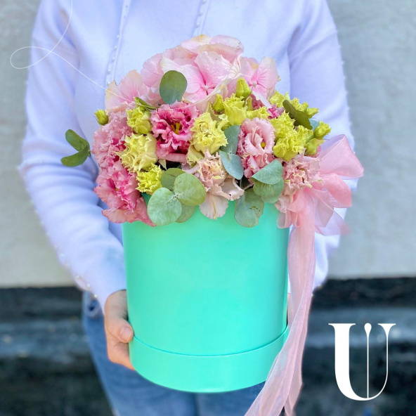 - Шляпная коробка пленка, мятный (выс. 20 см, диам. 18 см) - 1 шт
