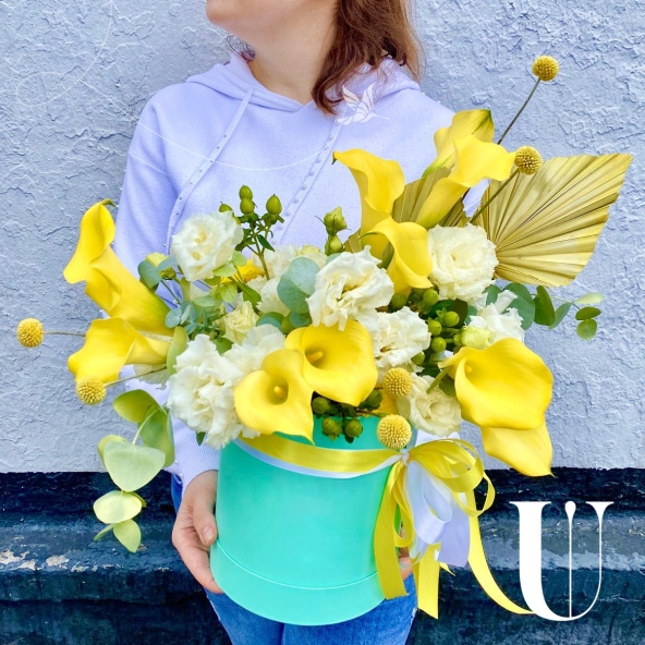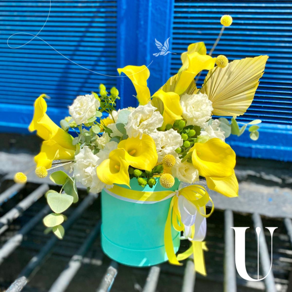 - Шляпная коробка пленка, мятный (выс. 20 см, диам. 18 см) - 1 шт