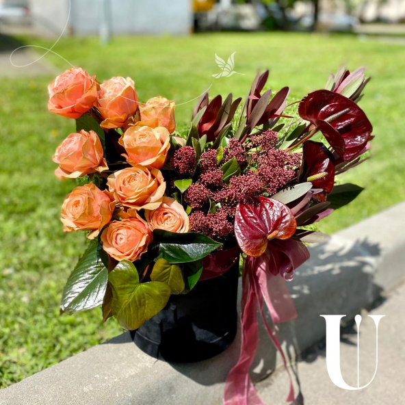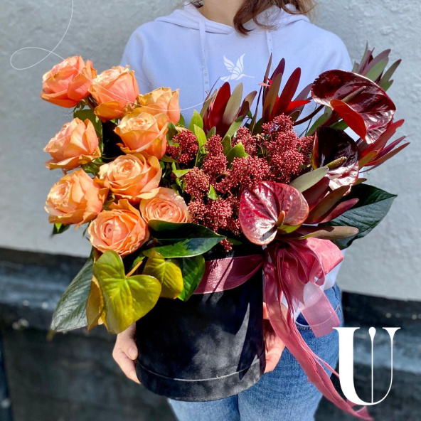 - Шляпная коробка бархатная, чёрная (выс. 20 см, диам. 18 см) - 1 шт