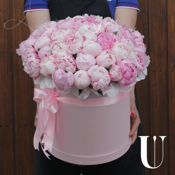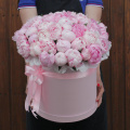 Шляпная коробка нежно-розовая 30 см., колба, юбка, лента нежно розовая