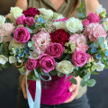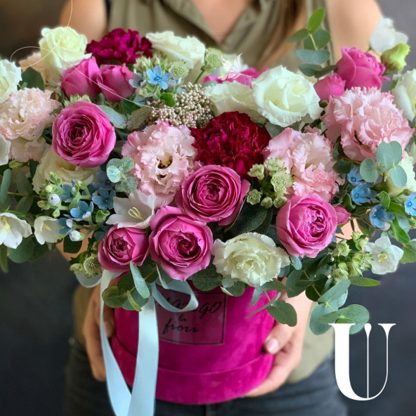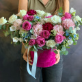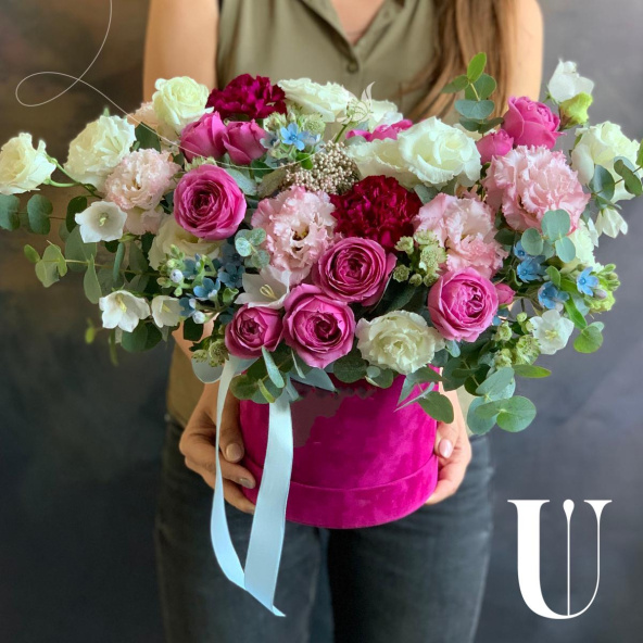 - Шляпная коробка бархатная, малиновая (выс.16 см, диам.16 см) - 1 шт