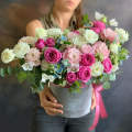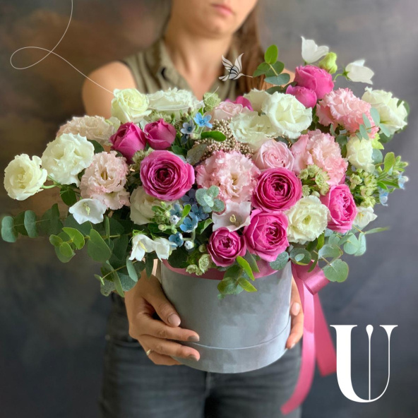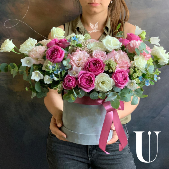 - Шляпная коробка бархатная,серая (выс. 16 см, диам. 16 см) - 1 шт