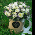 Композиция из кустовых пионовидных роз Джульетта в шляпной коробке
