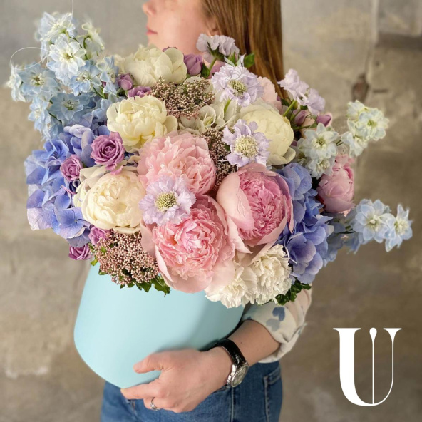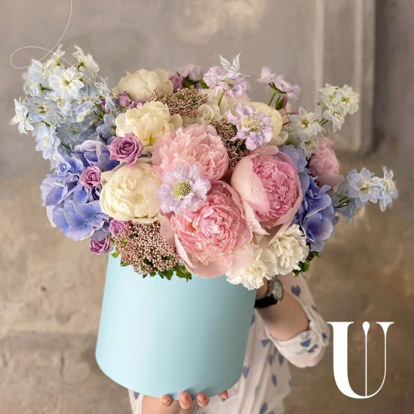 - Шляпная коробка маджестик (U), светло-голубая (выс. 25 см, диам. 20 см) - 1 шт