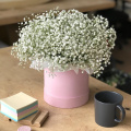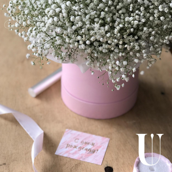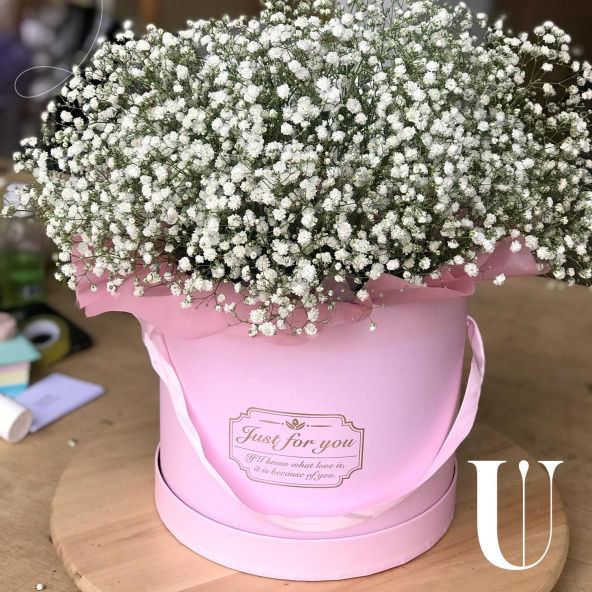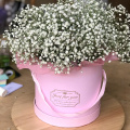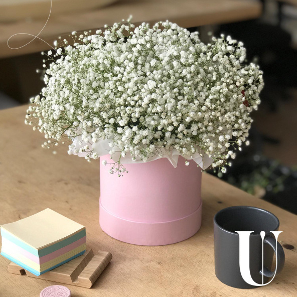 Белое облако гипсофилы в шляпной коробке, элегантный подарок для любимых