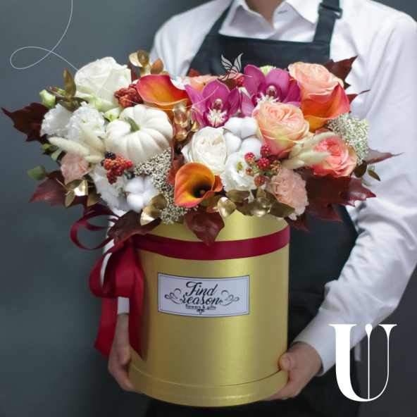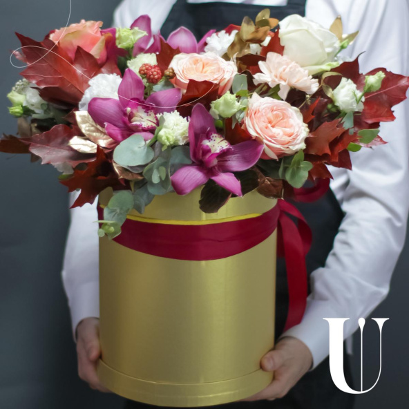 - Шляпная коробка золотая (выс. 25 см, диам. 22 см) - 1 шт