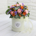 Композиция из микса нежных гортензий в белой шляпной коробке