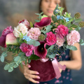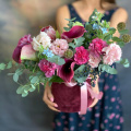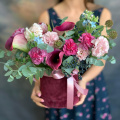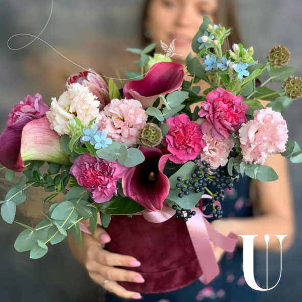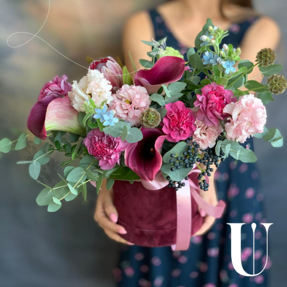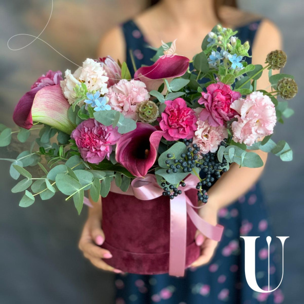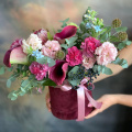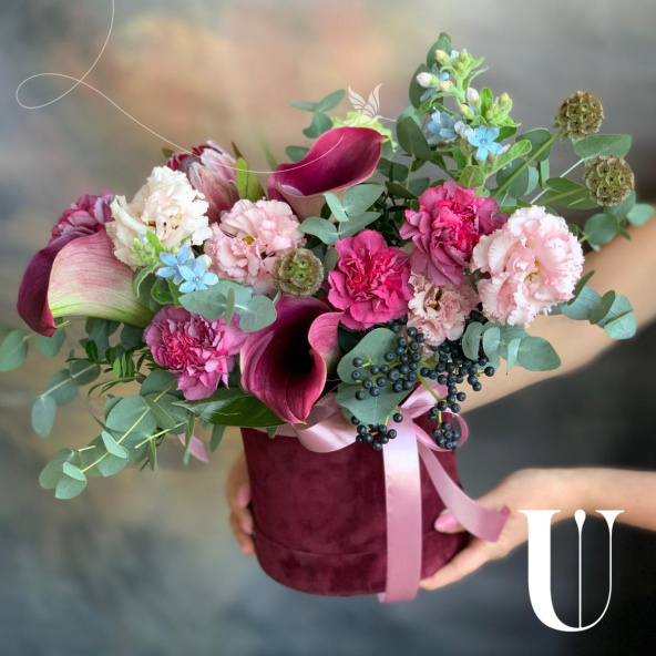 - Шляпная коробка бархатная, бордовая (выс. 16 см, диам. 16 см) - 1 шт