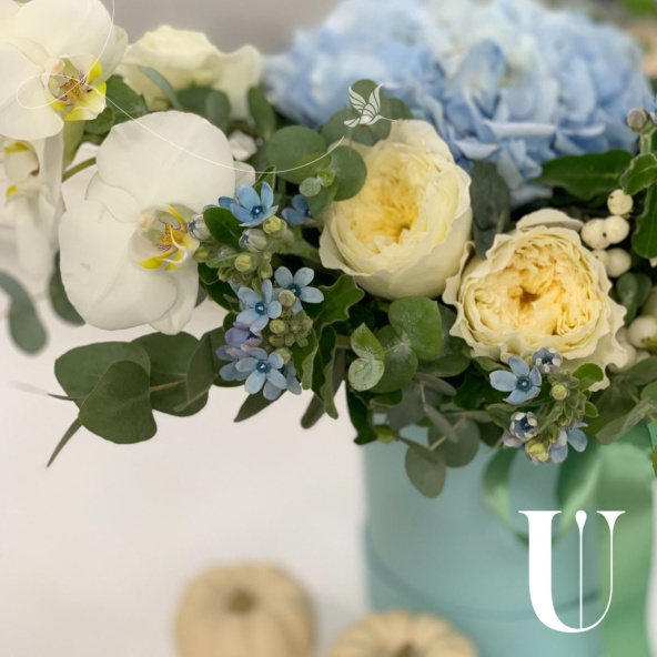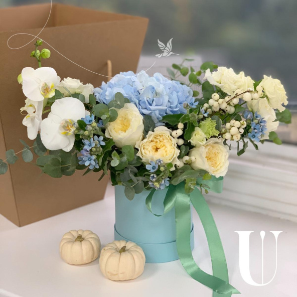 - Шляпная коробка, голубая (выс. 17 см, диам. 14 см) - 1 шт