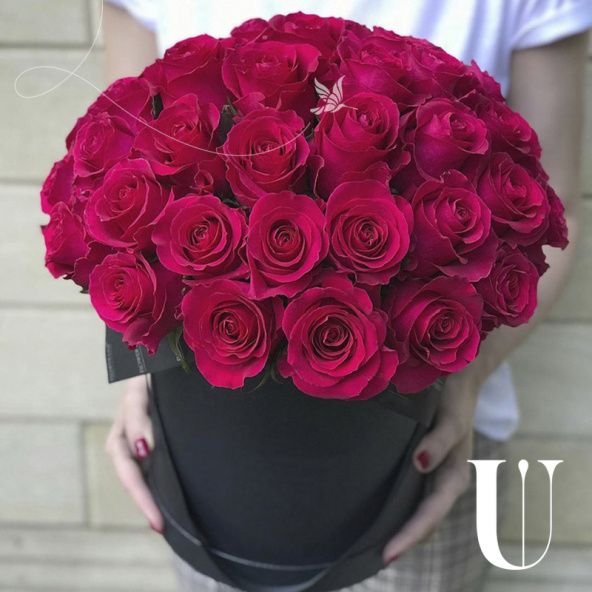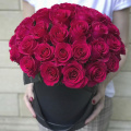 Композиция из 19 роз Ред Наоми в черной шляпной коробке