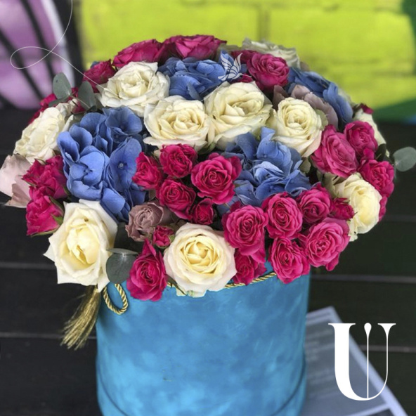 - Шляпная коробка, голубая (выс. 30 см, диам. 25 см) - 1 шт