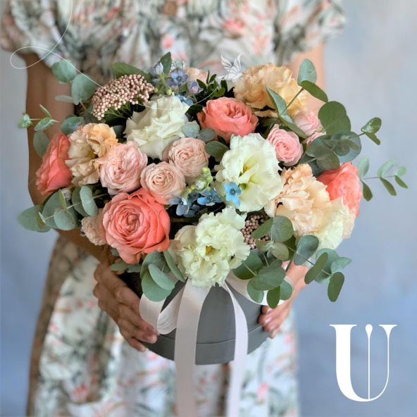 - Шляпная коробка бархатная,серая (выс. 16 см, диам. 16 см) - 1 шт
