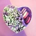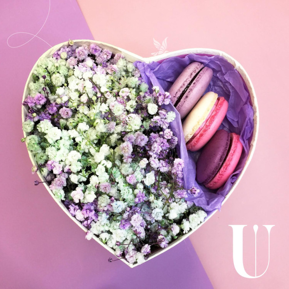 Мини-композиция из голубой гортензии в розовой шляпной коробке