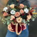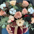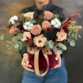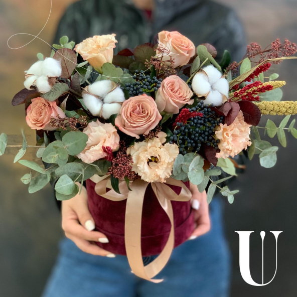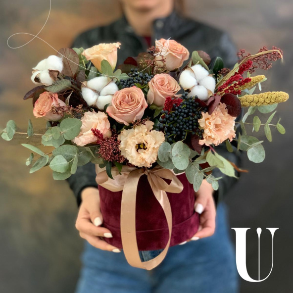 - Шляпная коробка бархатная, бордовая (выс. 16 см, диам. 16 см) - 1 шт