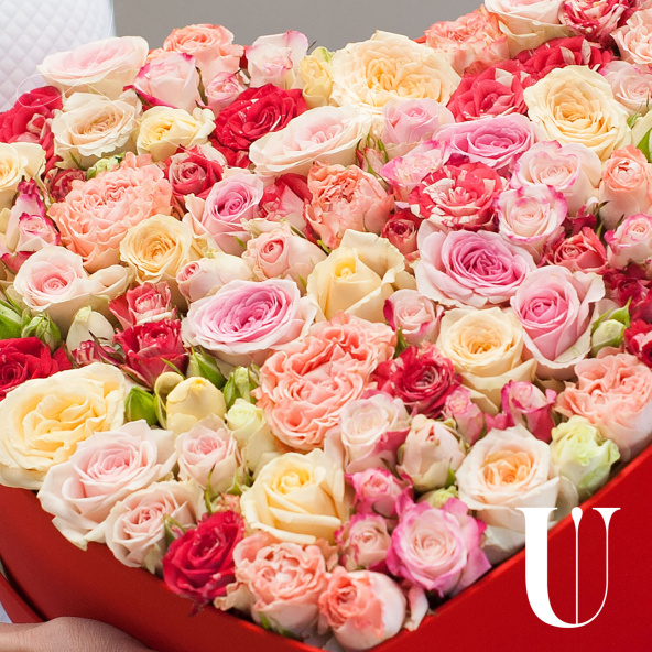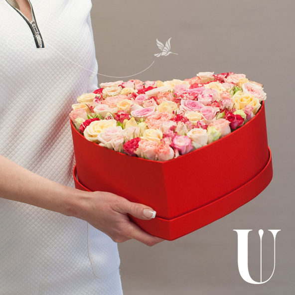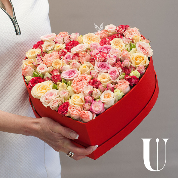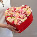 Розы Ред Наоми, шоколад и мишка мини в коробке формы сердца