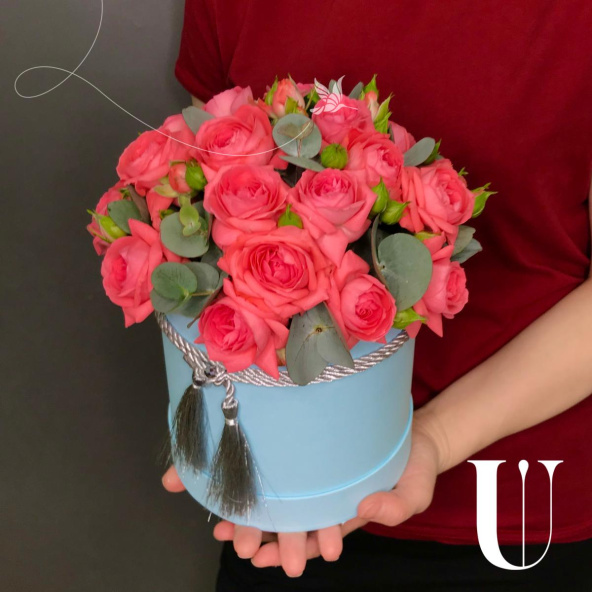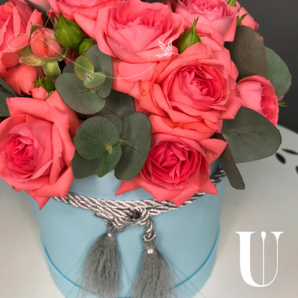 - Шляпная коробка маджестик (U), светло-голубая (выс. 15 см, диам. 15 см) - 1 шт