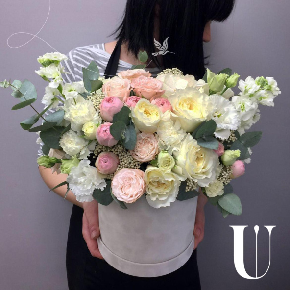 - Шляпная коробка бархатная (U), голубая (выс. 25 см, диам. 20 см) - 1 шт