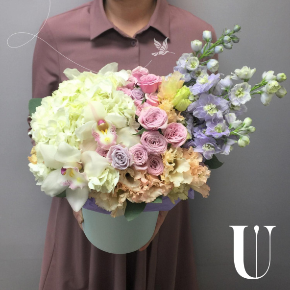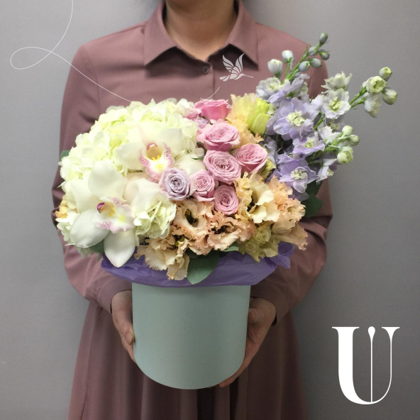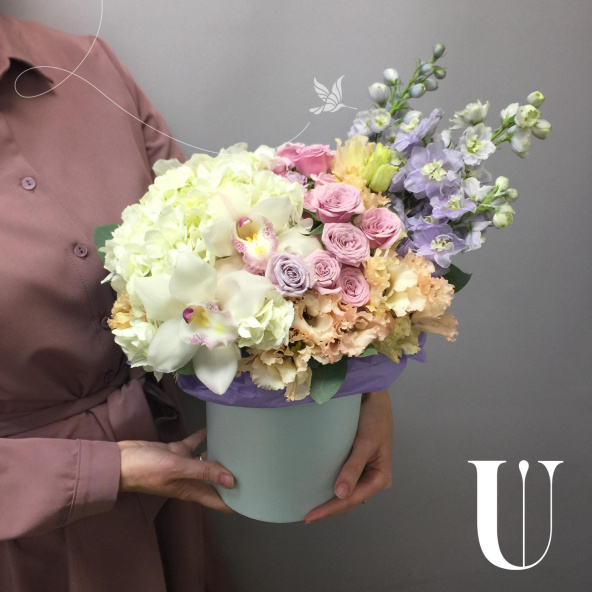 - Шляпная коробка маджестик, голубая (выс. 20 см, диам. 15 см) - 1 шт