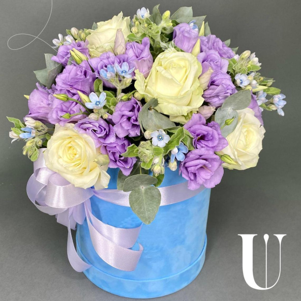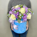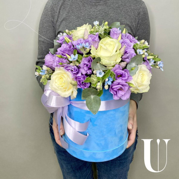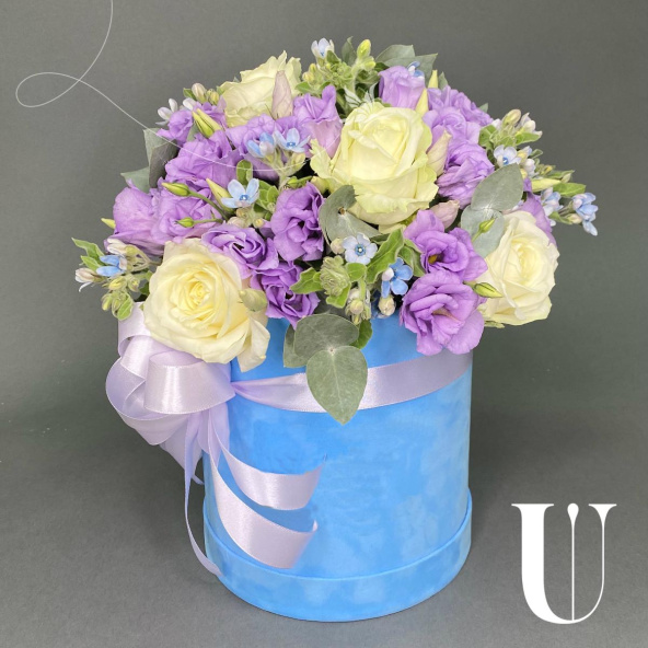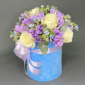 - Шляпная коробка, бархатная голубая (выс. 20 см, диам. 18 см) - 1 шт