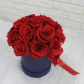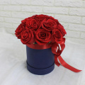 Композиция из роз, диантуса и лизиантуса в шляпной коробке