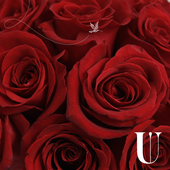 Композиция из кремовых кустовых роз и белых эустом в шляпной коробке