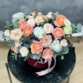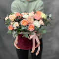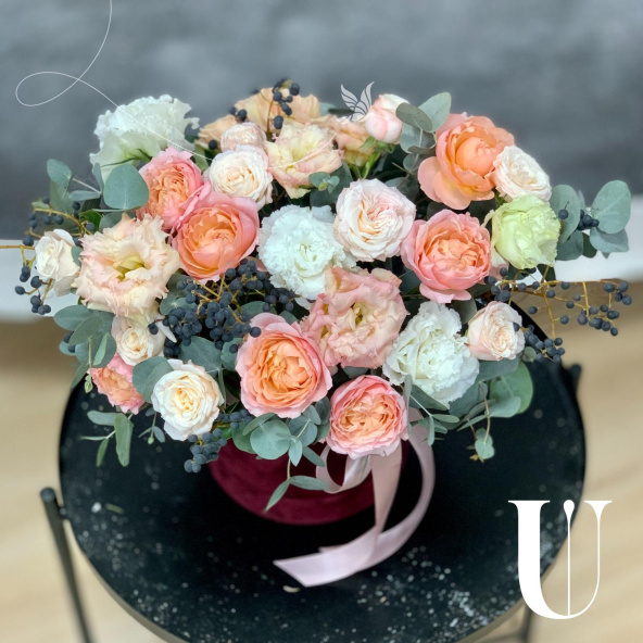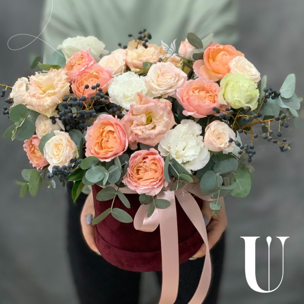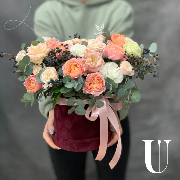 - Шляпная коробка бархатная, бордовая (выс. 16 см, диам. 16 см) - 1 шт