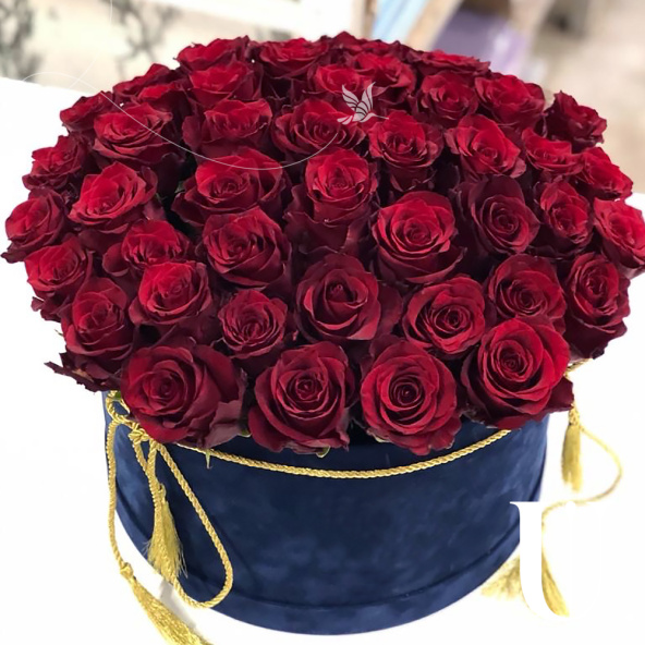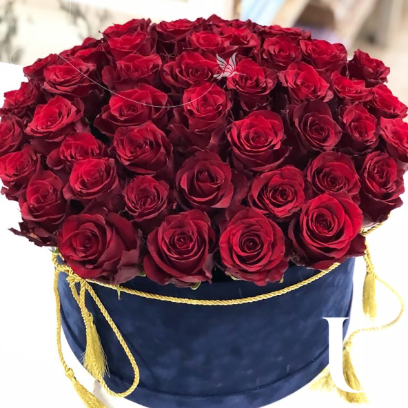 - Шляпная коробка бархатная, синяя (выс. 25 см, диам. 40 см) - 1 шт